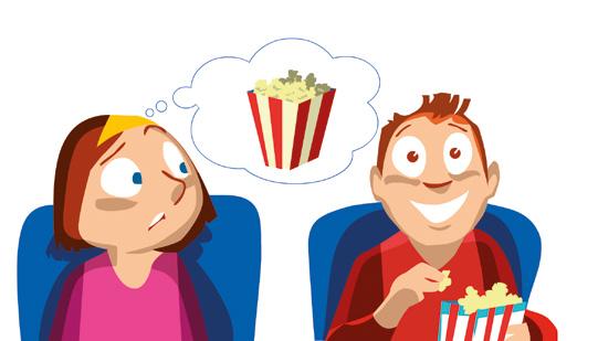 YOU ARE AT THE CINEMA. YOU HAVE TO BE QUIET BUT YOU WANT MORE POPCORN. HOW WOULD YOU TELL YOUR FRIEND WITHOUT TALKING?