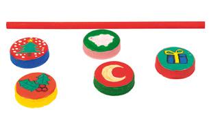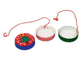 Explain the steps to make the Christmas mobile, emphasising the importance of not skipping any of them. If they choose to create the mobile as a team, each member can pick a decorative motif for one of the caps.
