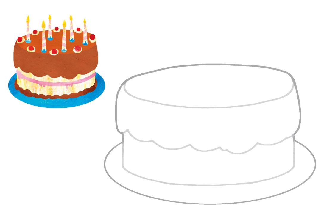 Begin the task by drawing the candles on the cake and freely completing the decoration. When painting, we will insist that the brush must be cleaned every time the colour is changed.