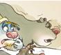 Para curarle la caries le limpió bien la muela con un aparato que daba vueltas a toda velocidad (chupar los labios con la lengua haciendo círculos en un sentido y en otro) y encima le echó una pasta para tapar el agujero. el cocodrilo, que ya se sentía mejor, le dio las gracias a la doctora y la llenó de besos (lanzar besos).