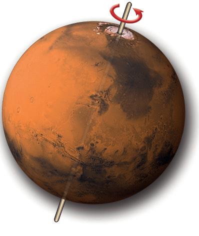 ➜ Rotación, alrededor de su eje. El tiempo que tarda en dar un giro completo se denomina día, y su duración varía de unos planetas a otros.