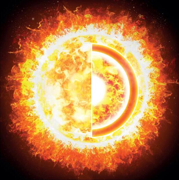 ➜ Núcleo. Alcanza una temperatura de casi 15 000 000 ºC. Es el lugar donde el hidrógeno se transforma en helio liberando energía.