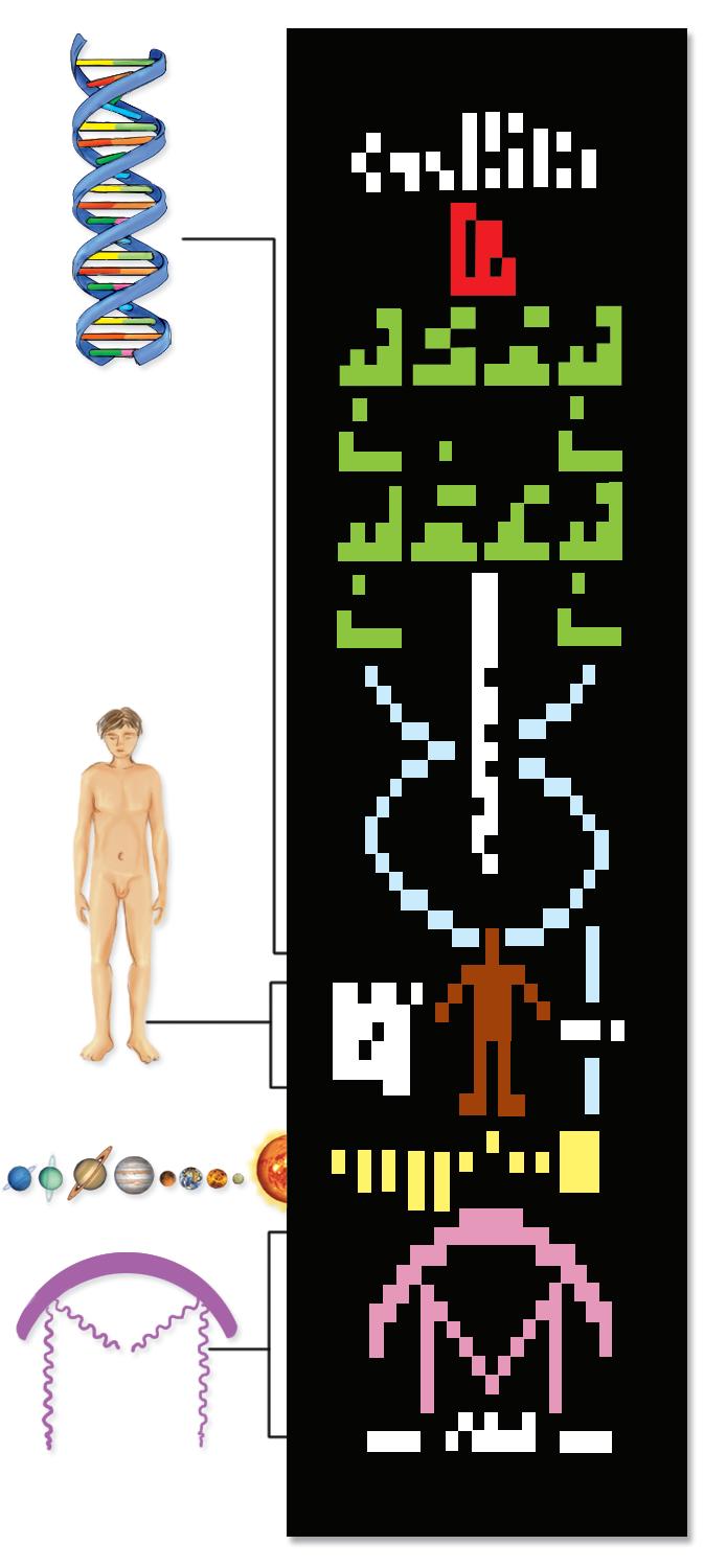 Mensaje emitido por el radiotelescopio de Arecibo en código binario.