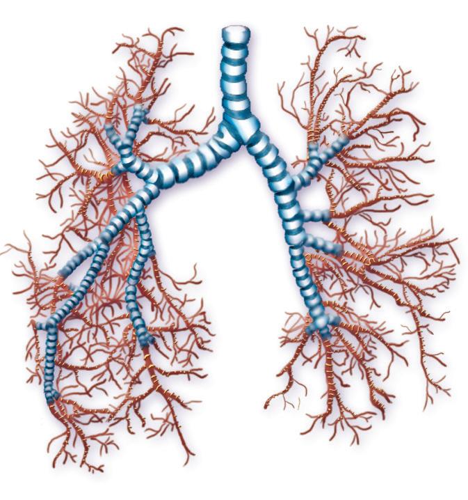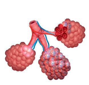 b) Alveoli, red blood cells, hemoglobin, oxygen.