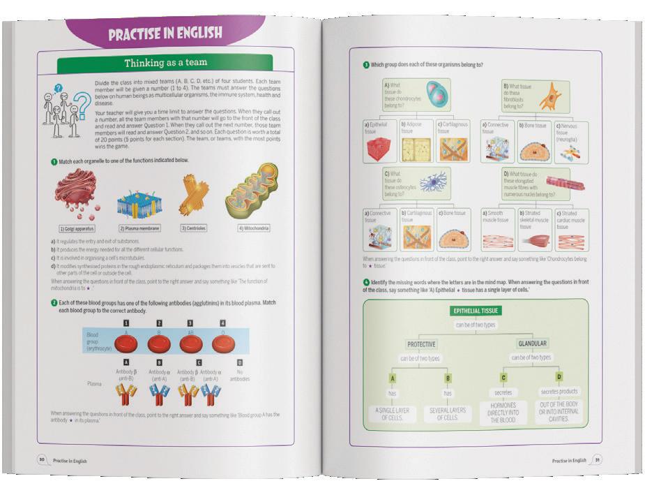 Divide the class into mixed teams (A, B, C, D, etc.) of four students. Each team member will be given a number (1 to 4). The teams must answer the questions below on human beings as multicellular organisms, the immune system, health and disease.