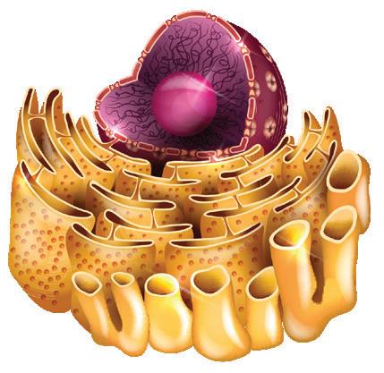 Rough endoplasmic reticulum. Protein synthesis and modification.
