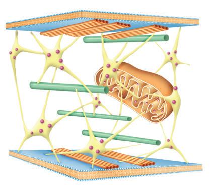 Cytoskeleton: Microfilaments (1), intermediate filaments (2) and microtubules (3). Support and movement of organelles.