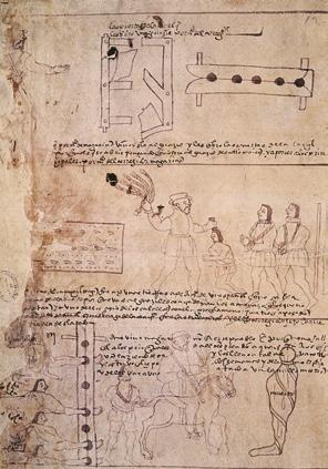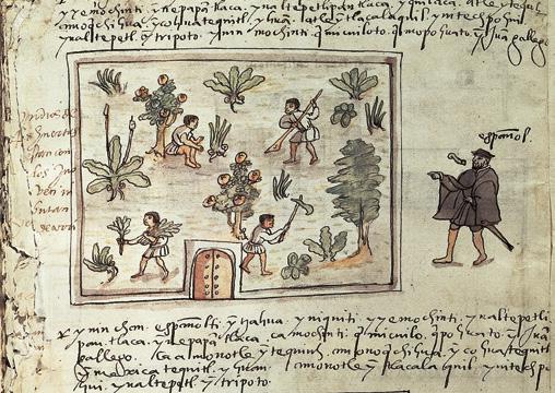 Códice Mendoza (1540). La imagen representa la educación de una niña azteca.