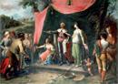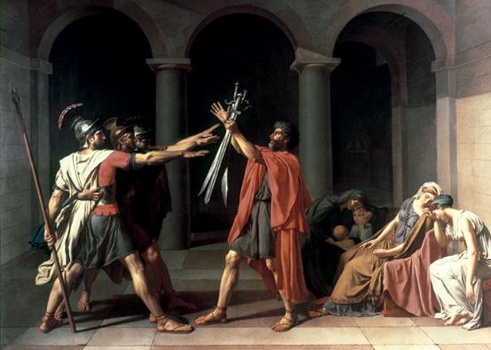 El juramento de los Horacios, Jacques-Louis David. Referente de la pintura neoclásica, Jacques-Louis David nos muestra en esta escena de corte clásico la disputa entre las localidades de Roma y Alba hacia el año 669 a. C.