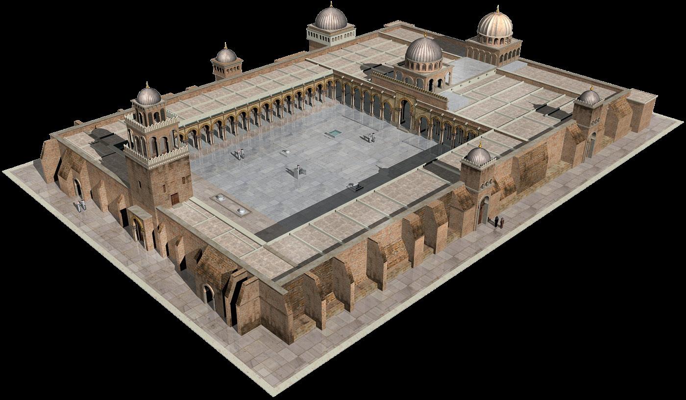 La mezquita es el edificio musulmán más destacado. Su estructura se basa en la casa de Mahoma, en Medina, y consta de dos partes: el patio y la sala de oración.