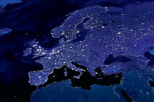 2 Begiratu Europako kontinenteko gaueko ikuspegi espazialaren irudiari, eta erantzun: