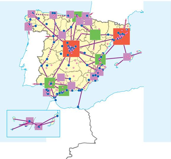 Populazioa milioi bat biztanletik gorakoa da, eta eginkizun espezializatenk ditu (goi-mailako zerbitzuak, berrikuntza, puntako teknologia, kultura). Herrialde osora zabaltzen dute eragina, eta, Madrilen kasuan, erkidegoko lurralde osoa hartzen du. Administrazio-mugak mugako probintzietara eta Espainiako gainerako lekuetara zabaltzen dira. Estatuko metropoli gisa, Espainiako hiri-sistema Europako eta munduko sistemarekin lotzen ditu.