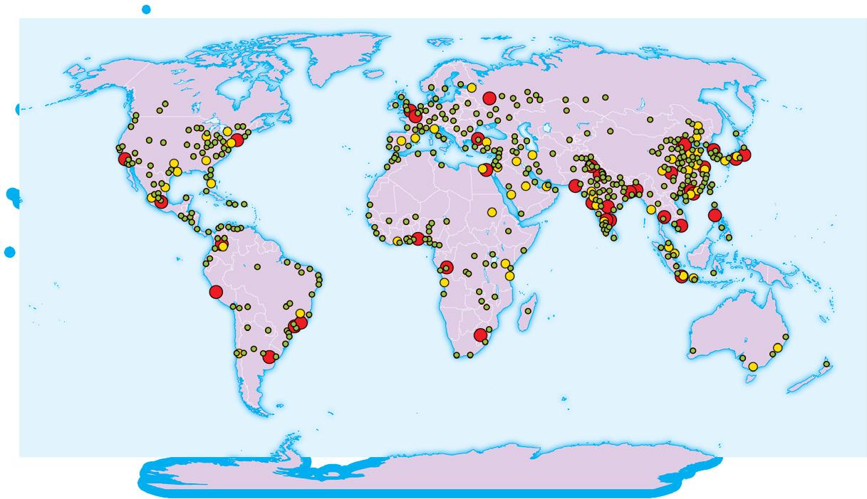 Milioi bat biztanletik gorako hiriak dira; eginkizun es pezializatuagoak egiten dituzte, eta kontinente osoan eragina dute. Londres eta Paris dira aipagarrienak; 11 milioi baino gehiago dituzte, eta finantza-, politi ka-, kultura-, eta zientzia-arloko eginkizun nagusiak hartzen dituzte barne. Gainera, irisgarritasun bikaina dute, eta laneskua kualifikatuago dago. Horrenbes tez, nazioarteko metropoliak dira, eta Europako hiri -sistema munduko sistemarekin lotzen dute.