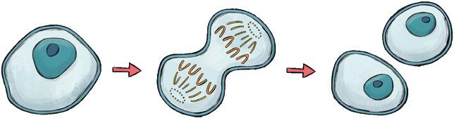Tras la telofase tiene lugar la división del citoplasma y el reparto de orgánulos entre las células hija.