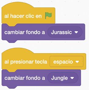 Programamos el personaje principal para que se mueva al presionar las flechas del teclado con estos bloques:
