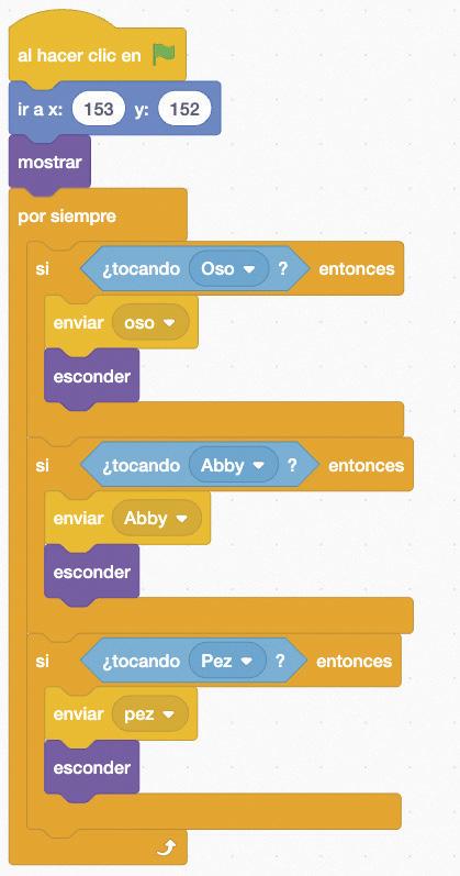 Programamos a Abby de forma similar como hemos hecho con el oso pero modificando algunas propiedades de los bloques.