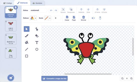 Añadimos todos los objetos necesarios desde la biblioteca de objetos Scratch o los diseñamos con el editor:
