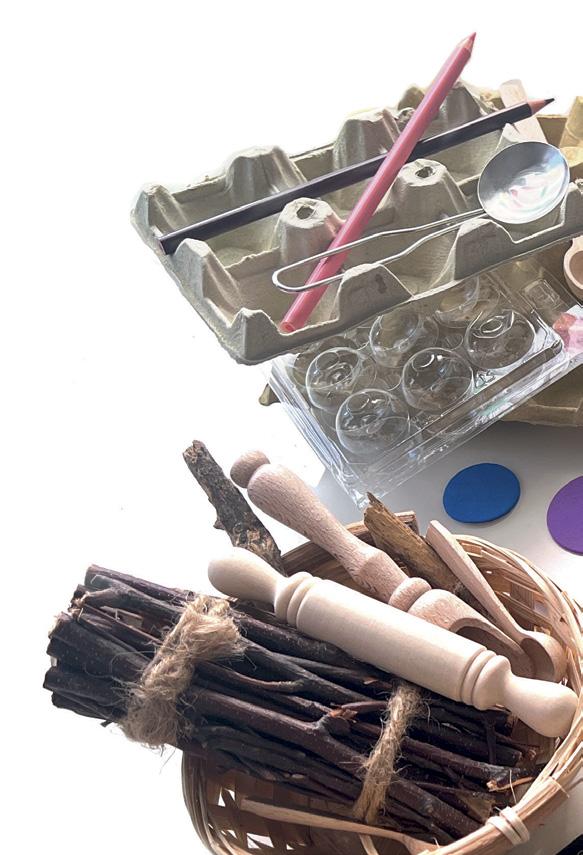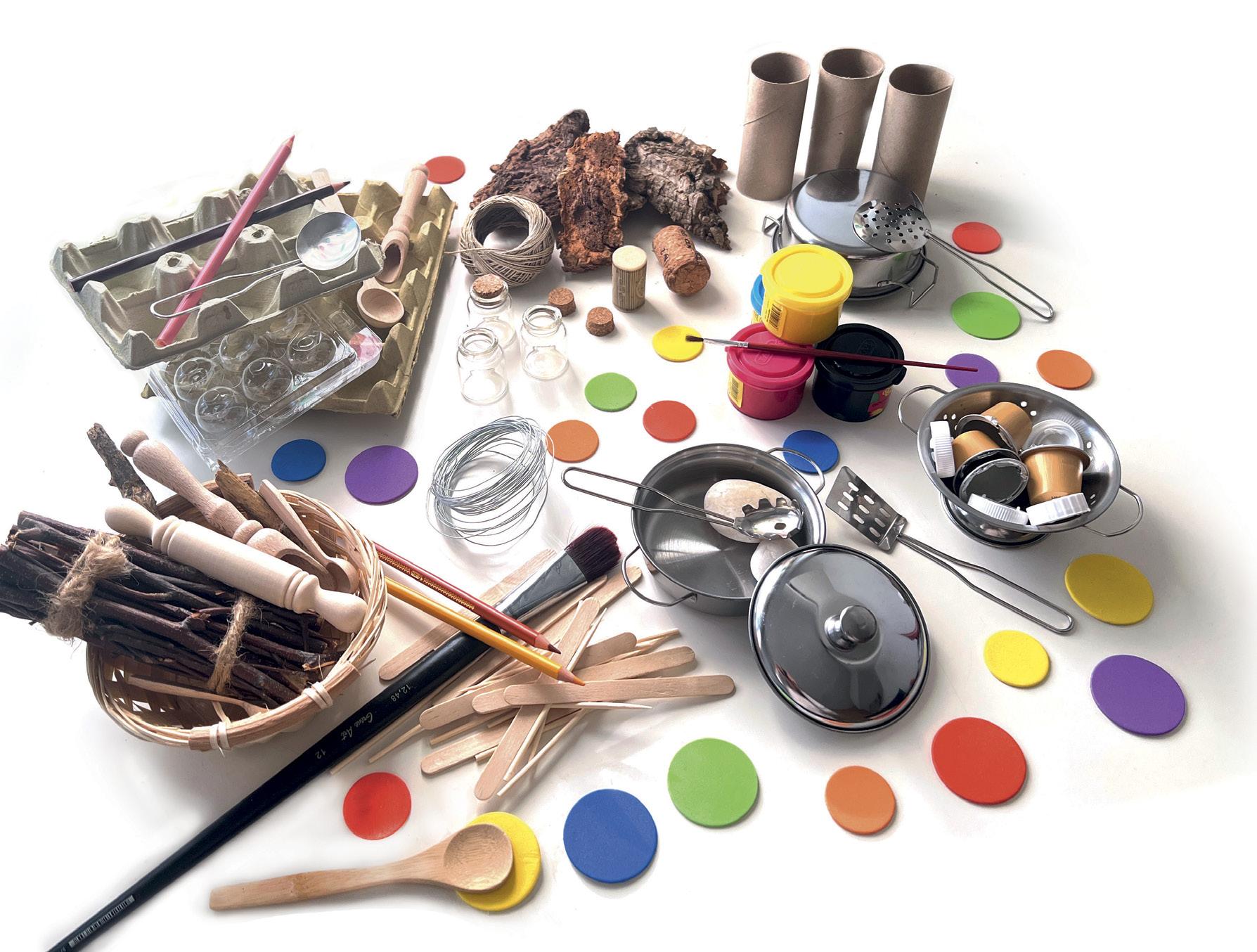 • En la página anterior, observa la mesa sensorial o de provocaciones. Rodea los materiales que usarías para hacer un instrumento musical.
