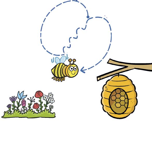 • En la página anterior, observa a qué figuras se parecen los bailes que hacen las abejas para indicar la distancia que hay desde las plantas a la colmena.