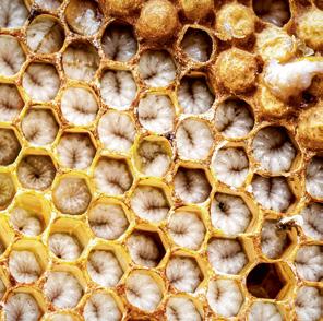 LA ABEJA REINA SE ALIMENTA DE JALEA REAL, LO MISMO QUE LAS ABEJAS OBRERAS DURANTE SUS PRIMEROS DÍAS DE VIDA.