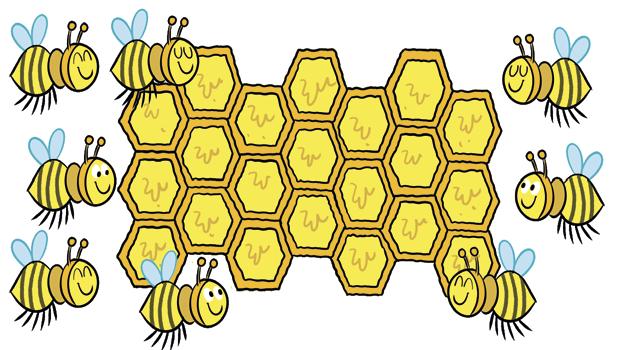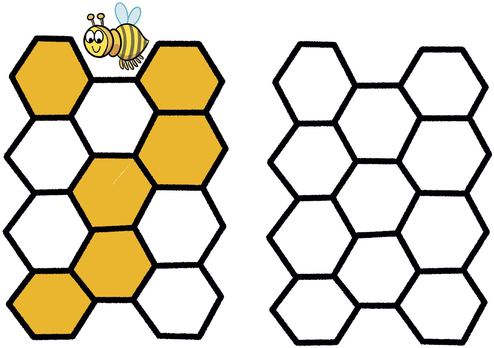 • En la página anterior, observa las celdas coloreadas en el panal donde está la abeja. Colorea las celdas del otro panal para que los dos sean iguales.