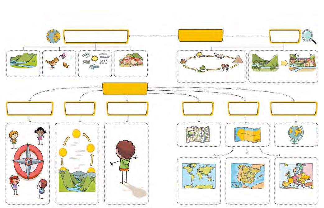 5.1. Identificar las características, la organización y las propiedades de los elementos del medio natural, social y cultural a través de la indagación y utilizando las herramientas y procesos adecuados.
