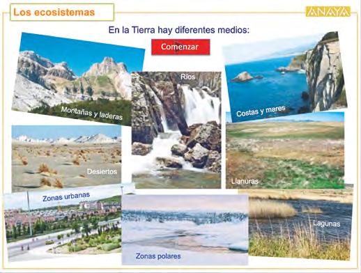 • Las TIC, en los apartados ¿Dónde viven los seres vivos?: «Te lo cuento en un momento» y «Algunos ecosistemas terrestres y acuáticos»; plan TIC-TAC; ¿Qué he aprendido?: Álbum de fotos de la unidad y «Objetivo en acción»