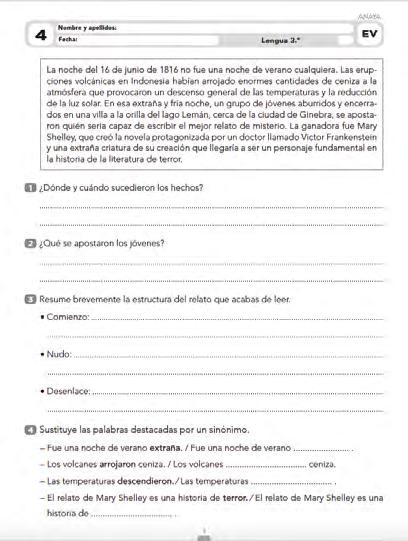 - Leo un relato divertido, que es un fragmento de la obra de John Kelly, Hospital para monstruos, Anaya. Gracias a la actividad competencial titulada «¿Eres una persona servicial?», el alumnado podrá desarrollar su educación emocional.
