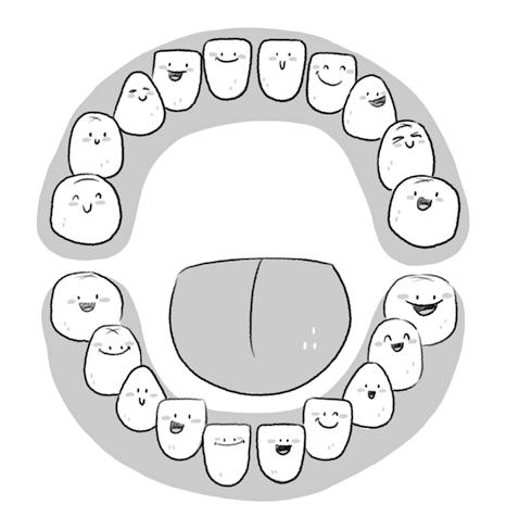 • Toma nota: Cuando somos pequeños, tenemos 10 piezas dentales arriba y otras 10 abajo. ¡Cepíllatelas bien!