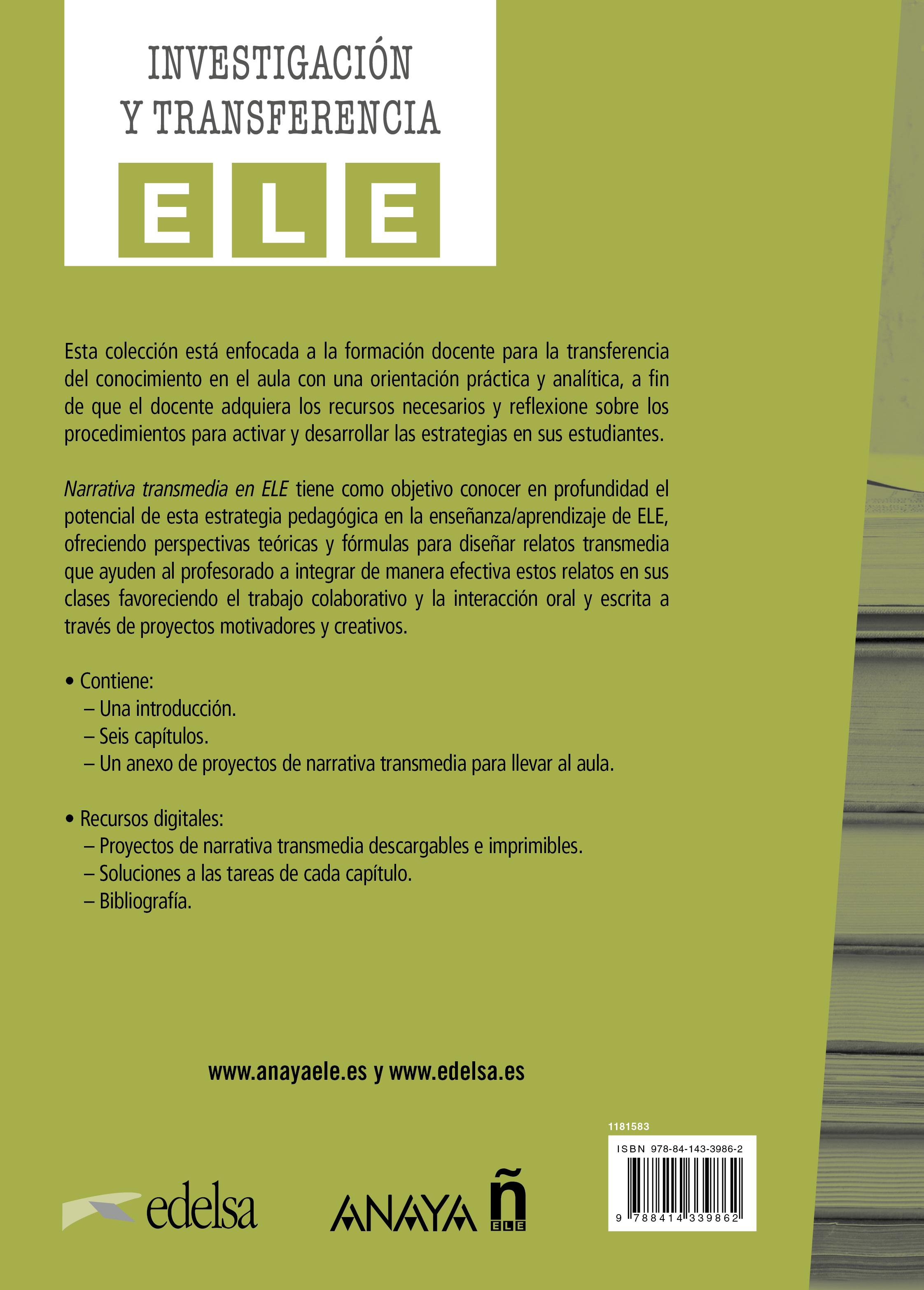 El presente trabajo tiene como objetivo conocer en profundidad el potencial de la narrativa transmedia en la enseñanza/aprendizaje de ELE, ofreciendo perspectivas teóricas, estrategias prácticas y estudios de casos que ayuden al profesorado a integrar de manera efectiva estos relatos en sus clases y a los creadores de materiales a enriquecer sus propuestas.