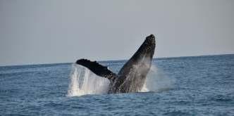 enormes cetáceos se reúnen en grupos para pescar y es ahí donde puede observarse sus impresionantes desplazamientos cuando emergen y se sumergen en el mar