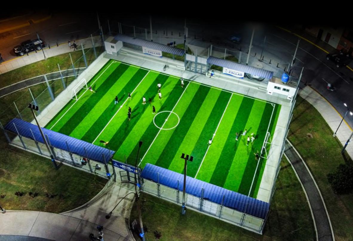 ...orgullo chalaco. Ahora, este emblemático punto luce una moderna losa deportiva con grass sintético, juegos infantiles, bancas,