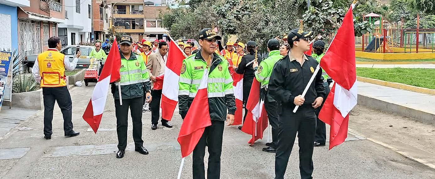 Embanderamiento en Santa Rosa une a vecinos, escolares y policías en emotivo homenaje por Fiestas Patrias.a
