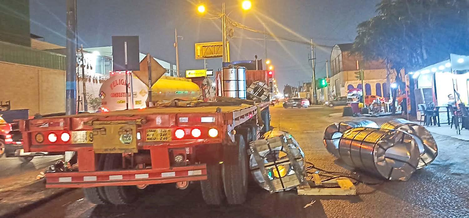otro tráiler colisionó con un poste frente a la Universidad César Vallejo, también en la misma vía. La constante circulación de carga pesada, el mal estado del aseguramiento de mercancía y la imprudencia al volante es-