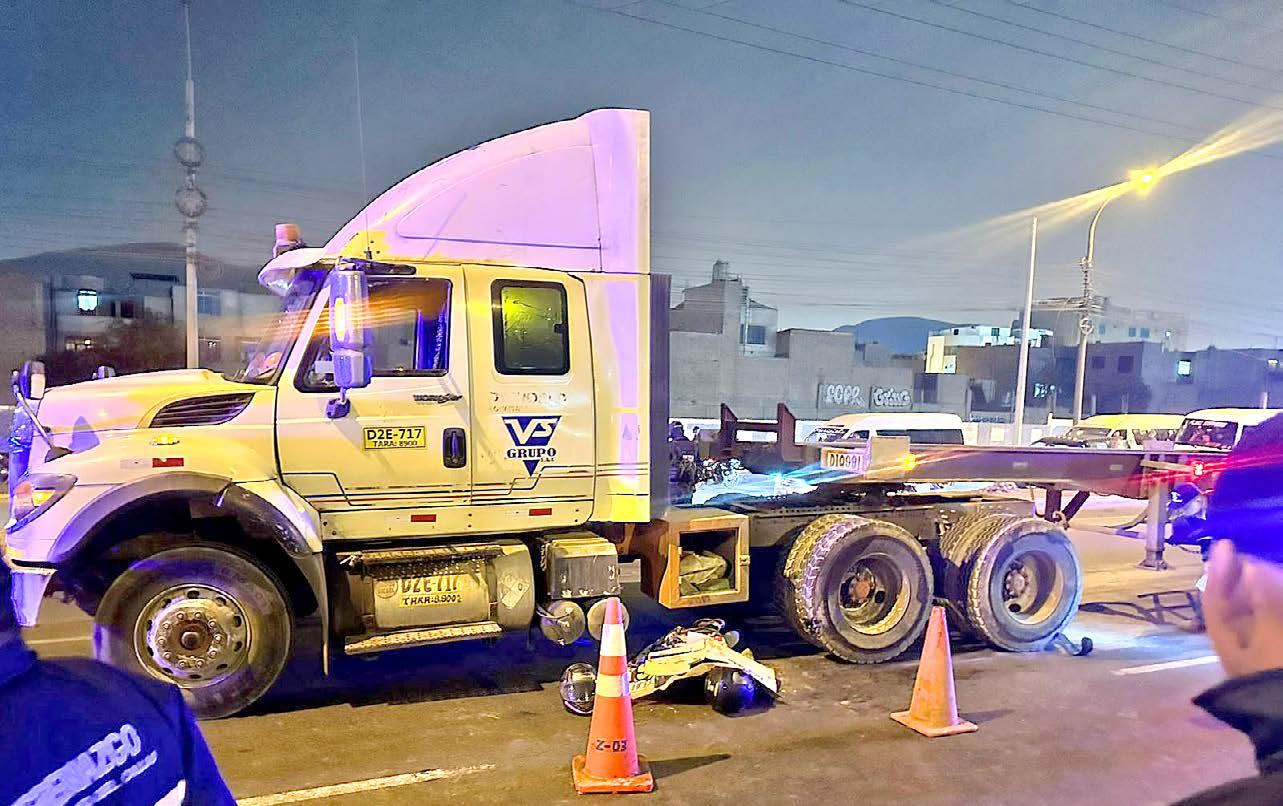 La noche del viernes 10 de octubre, un trágico accidente de tránsito ocurrió en la avenida Néstor Gambetta, cerca del cruce con Brisas de oquendo, en el Callao. Un motociclista identificado como Alex Eduardo Lavado Barboza perdió la vida tras ser atropellado por un tráiler blanco, en circunstancias que aún son materia de investigación. La víctima, conductor de una moto lineal de placa 318-2DC, quedó tendida bajo el pesado vehículo.