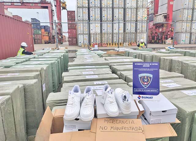 Un nuevo golpe al contrabando se registró en el Puerto del Callao, donde agentes del Equipo de Inteligencia Aduanera descubrieron un contenedor que transportaba más de 7,700 pares de sandalias y zapatillas de reconocidas marcas extranjeras, mercancía valorizada en alrededor de S/ 1.2 millones. El cargamento tenía como destino final Chile y fue declarado falsamente como cajas de regalo.
