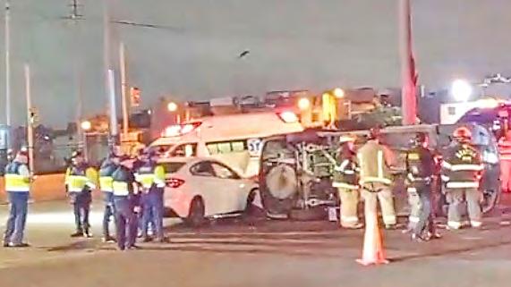 Un aparatoso accidente de tránsito se registró la madrugada de este lunes 15 de diciembre en la avenida Morales Duárez, cruce con la avenida Elmer Faucett, en el distrito de Carmen de la Legua Reynoso.