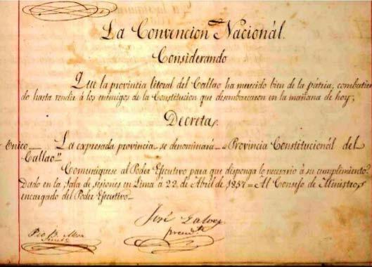 Ya 21 años antes, tras la creación de la Confederación Peruano-Boliviana, el general Andrés de Santa Cruz había dado el decreto de creación de la Provincia Litoral del Callao, el 20 de agosto de 1836. Esto daba autonomía política para resolver asuntos internos.