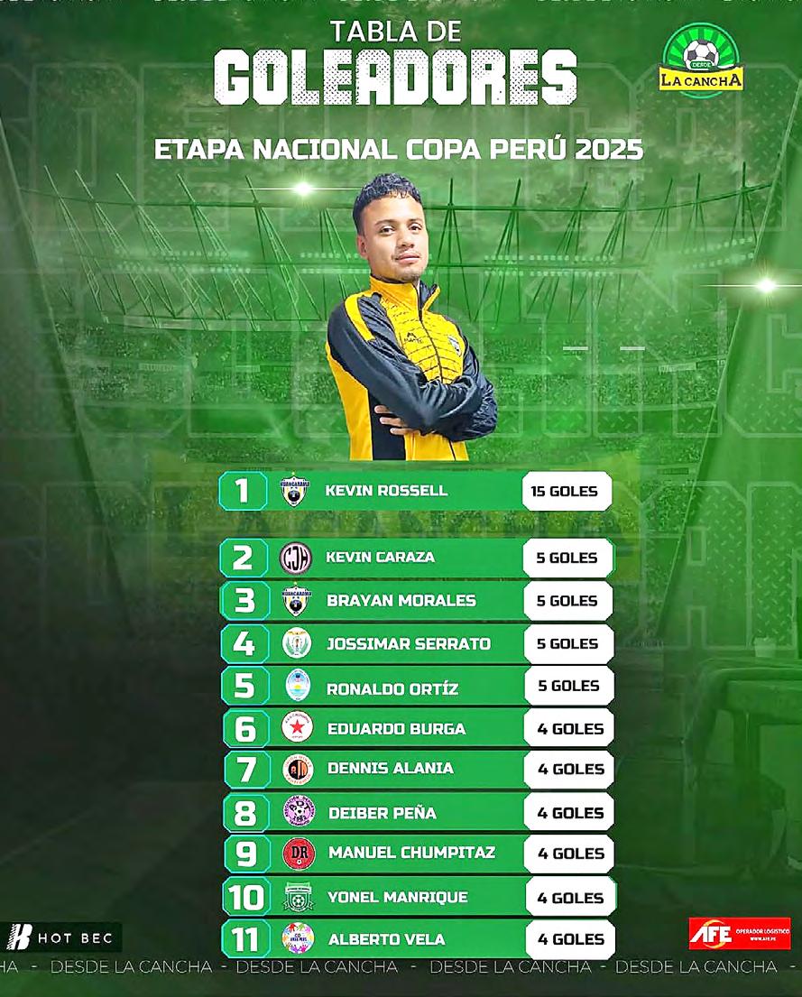 La Copa Perú 2025 tiene un nombre propio: Kevin Brando Rosell López. El delantero chalaco, nacido en Carmen de la Legua Reynoso, se ha convertido en el máximo goleador del torneo con 15 tantos, consolidándose como figura indiscutible y llevando el nombre del Callao a lo más alto del fútbol nacional.