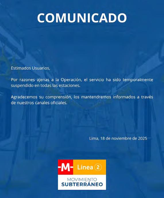 de 25 millones de usuarios, con concentración en Evitamiento (40%), Mercado Santa Anita (23%) y Óvalo Santa Anita (17%). El anuncio fue difundido por la entidad responsable y replicado por la ATU, que informó que la suspensión responde a situaciones “ajenas a la operación”.