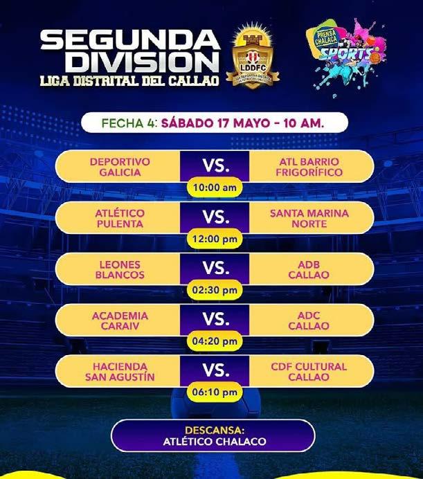 lazo a Caraiv. Sin embargo, dos minutos después la escuadra en condición de local no se quedó atrás e igualó el marcador. A los 19 del segundo tiempo ADC Callao volvió a imponerse con un gol de cabeza de su 9, pero luego de diez minutos Academia Caraiv terminó empatando el encuentro. El cotejo que cerró la jornada fue entre Hacienda