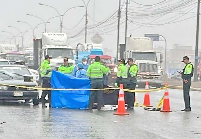 El lugar del accidente fue rápidamente acordonado por agentes de la Policía Nacional del Perú, quienes restringieron el paso vehicular para preservar la escena y permitir las labores de peritaje. El cuerpo del hombre yacía tendido sobre el asfalto, cubierto únicamente por un plástico