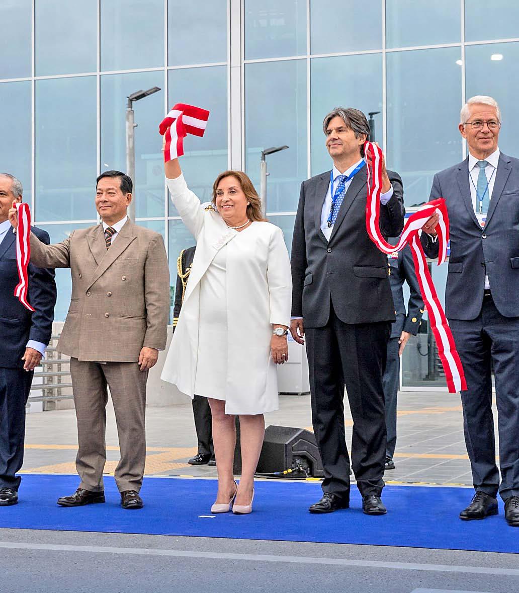Acompañaron a Boluarte en la ceremonia el presidente del Consejo de Ministros, Gustavo Adrianzén; el ministro de Transportes y Comunicaciones, César Sandoval; así como representantes de Lima Airport Partners (LAP), empresa concesionaria encargada del proyecto. Tras el corte de cinta, las autoridades recorrieron las nuevas instalaciones, que triplican en tamaño al antiguo terminal y están ubicadas en la avenida Morales Duárez, en la provincia constitucional del Callao.