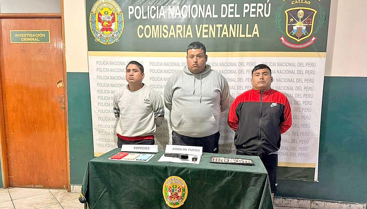En un operativo ejecutado por efectivos de la comisaría de Ventanilla, fueron detenidos Juan Enríquez Pedraza (27), Marcos Muñoz Condori (27) y Daniel Carlos Enríquez (37), presuntos integrantes de la banda criminal “Los injertos de las Viñas”. El hecho ocurrió en el asentamiento humano Susana Higuchi, en el distrito de Ventanilla, Callao.