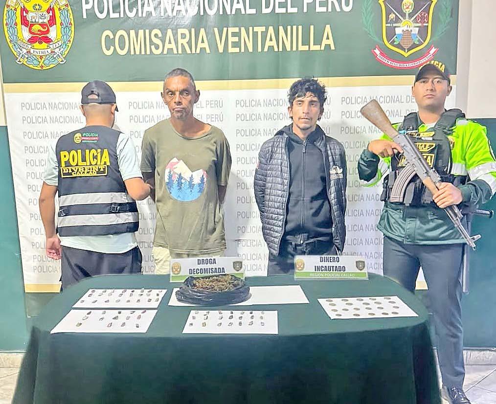 En el marco del estado de emergencia, efectivos de la comisaría de Ventanilla, en coordinación con la División Regional de Inteligencia, lograron la captura de dos sujetos presuntamente involucrados en la comercialización de drogas en la zona.