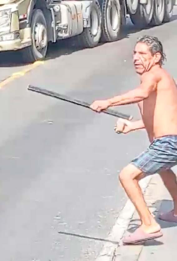 Un video captado en la avenida Atalaya, en el Callao, muestra a un hombre con un palo en la mano intentando golpear a un tráiler en plena vía. Según denuncias de testigos, este sujeto, que frecuenta la zona, amedrenta a los conductores exigiéndoles dinero para permitirles el paso. Transportistas que circulan por la ruta han denunciado agresiones previas, como
