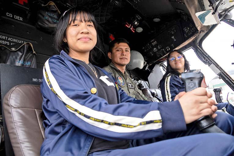 Los estudiantes no solo observaron el funcionamiento de la aviación policial, sino que también interactuaron con agentes, quienes compartieron testimonios sobre disciplina, compromiso y trabajo en equipo.