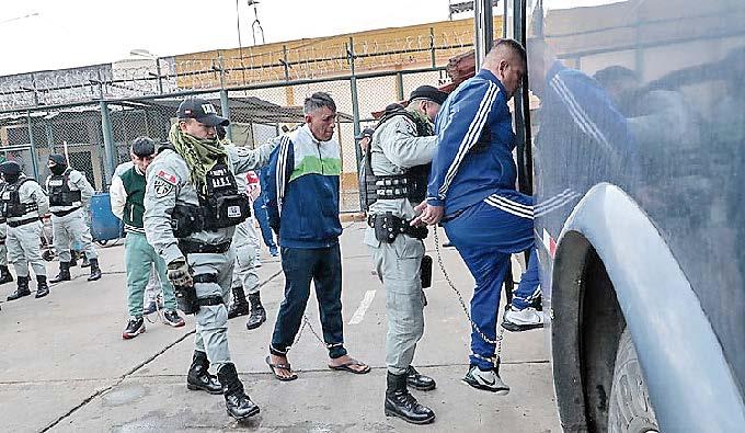 cada traslado. El director de Seguridad Penitenciaria, Alex Samamé Peña, explicó que la acción busca restaurar el orden y reafirmar el principio de autoridad, enviando un mensaje claro: quienes vulneren la seguridad de los penales enfrentarán medidas inmediatas. Desde el Callao, donde estos grupos tienen presencia, se sigue con aten-