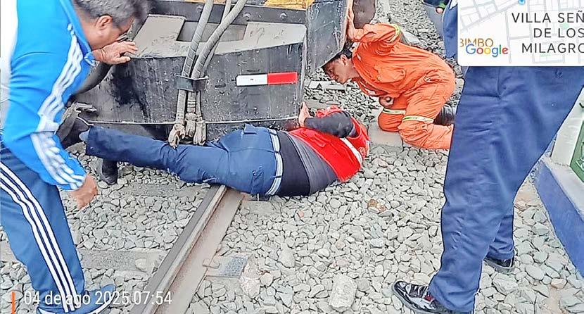 En horas de la mañana de ayer se registró un accidente en la intersección de la avenida Daniel Alcides Carrión con la avenida 28 de Julio, en Carmen de La LeguaReynoso. El servidor del área de Fiscalización, identificado como Narciso Minvela Rosas, de 66 años, fue impactado por una unidad de tren mientras cumplía funciones. Según su testimonio, el hecho ocurrió cuando intentó rescatar a una menor que caminaba distraída sobre los rieles. El trabajador logró apartar a la niña a tiempo, pero no alcanzó a ponerse a salvo y terminó siendo atropellado. Personal de Rescate y una ambulancia de la Municipalidad acudieron de inmediato al lugar. Minvela presentaba múltiples contusiones y fue trasladado de urgencia a la clínica San
