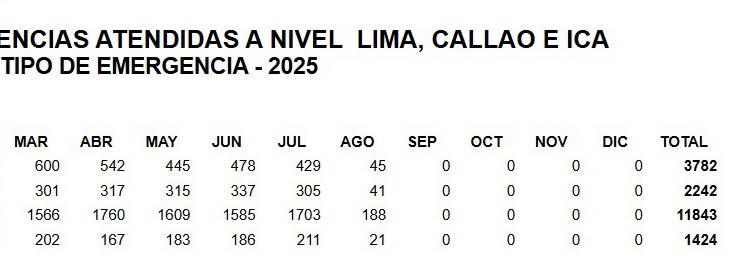 En lo que va del 2025, los bomberos ya han registrado 12.320 atenciones médicas a nivel nacional, de las cuales 11.533 se concentraron solo en Lima y el Callao, lo que revela la alta demanda de auxilio en estas regiones. Además, se reportaron 3.782 emergencias por incendios en Lima, Callao e Ica, según datos del Comando Nacional del CGBVP.